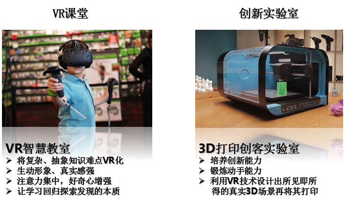 VR互動(dòng)教學(xué)平臺(tái)是VR/AR技術(shù)結(jié)合現(xiàn)有教育模式的創(chuàng)新型應(yīng)用場(chǎng)景,將STEAM和創(chuàng)客教育VR化,互動(dòng)化、沉浸化,為學(xué)生提供前所未有的學(xué)習(xí)、創(chuàng)作環(huán)境,為老師的教學(xué)手段提供強(qiáng)有力的補(bǔ)充和支撐,是國(guó)家“十三五”規(guī)劃中虛擬現(xiàn)實(shí)技術(shù)在教育行業(yè)中的有機(jī)結(jié)合。