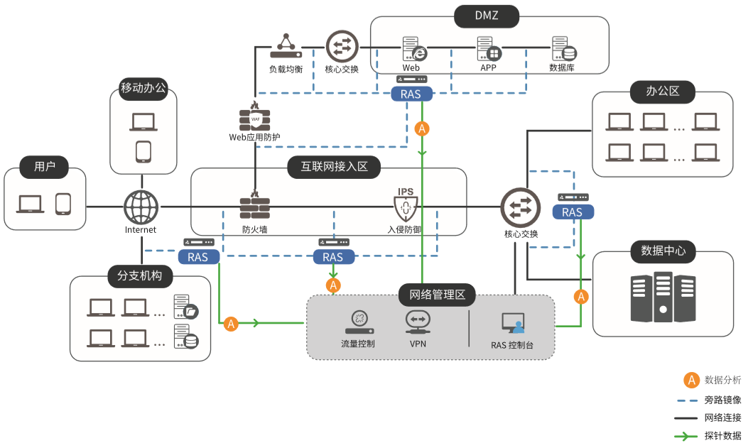網(wǎng)絡(luò)承載了越來越多的關(guān)鍵業(yè)務(wù)和應(yīng)用,在大數(shù)據(jù)、云計算等新興的網(wǎng)絡(luò)應(yīng)用和網(wǎng)絡(luò)架構(gòu)中,IT運維人員面臨全新的挑戰(zhàn)。隨時面臨著因網(wǎng)絡(luò)故障而導(dǎo)致的業(yè)務(wù)中斷、經(jīng)濟(jì)損失等各種不可預(yù)知的風(fēng)險。網(wǎng)絡(luò)架構(gòu)越來越復(fù)雜,依靠個人經(jīng)驗的運維方式難以為繼,因此新形勢下的IT運維需要更加智能、高效。針對這些情況提出了全網(wǎng)流量回溯分析解決方案,集成大容量存儲的高性能數(shù)據(jù)包采集和智能分析軟硬件一體化平臺,可以分布式部署在網(wǎng)絡(luò)的關(guān)鍵節(jié)點,支持對物理網(wǎng)絡(luò)和云網(wǎng)絡(luò)流量的采集分析。以關(guān)鍵應(yīng)用為中心,實現(xiàn)對應(yīng)用的網(wǎng)絡(luò)訪問性能、系統(tǒng)服務(wù)性能、應(yīng)用響應(yīng)性能等關(guān)鍵性能指標(biāo)的智能分析。同時還可實時捕獲并保存網(wǎng)絡(luò)通訊流量,具備對長期網(wǎng)絡(luò)通訊數(shù)據(jù)進(jìn)行快速數(shù)據(jù)挖掘和回溯分析能力。實現(xiàn)對關(guān)鍵業(yè)務(wù)系統(tǒng)中的網(wǎng)絡(luò)異常、應(yīng)用性能異常和網(wǎng)絡(luò)行為異常的秒級發(fā)現(xiàn),以及區(qū)分異常原因的智能回溯分析,提升了對關(guān)鍵業(yè)務(wù)系統(tǒng)的運行保障能力和問題處置效率。