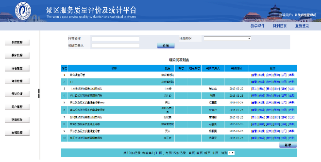 景區(qū)服務質(zhì)量評價及統(tǒng)計平臺:實現(xiàn)對景區(qū)進行規(guī)范化評測,并分不同層次實現(xiàn)對景區(qū)服務質(zhì)量數(shù)據(jù)的統(tǒng)計分析,引導學生從景區(qū)管理者角度發(fā)現(xiàn)挖掘景區(qū)服務質(zhì)量改進完善方向及措施,同時從游客體驗角度去感受景區(qū)服務,并提出景區(qū)服務體驗建議。 |